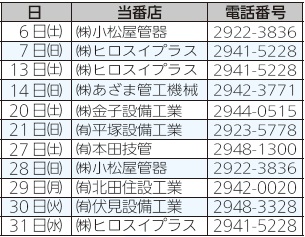 24時間受け付けしています。当番店に直接ご連絡ください。