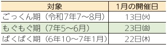 内容:栄養士、歯科衛生士、保健師などと各種相談