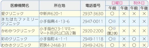 ■小児科日曜日・祝休日診療〔上記休日急患当番医を除く診療日〕