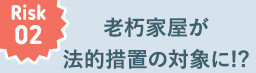 建物の管理がずさんで危険と判断されると「特定空家等」や「管理不全空家等」に認定されます。特定空家等では、行政代執行による強制撤去で費用を請求されるリスク、管理不全空家等では固定資産税の減免措置が解除され、納税額が上がるリスクが!