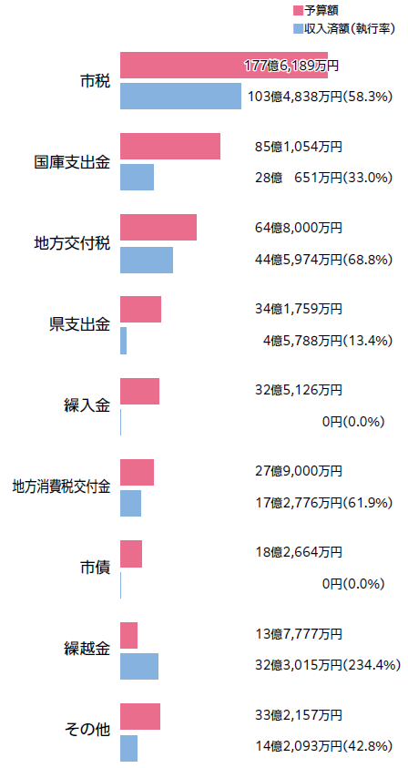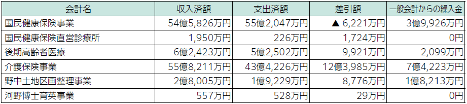 ※国民健康保険事業の不足額は、一般会計からの一時流用にて対応しており、下半期または出納整理期間中に収入が見込まれています。