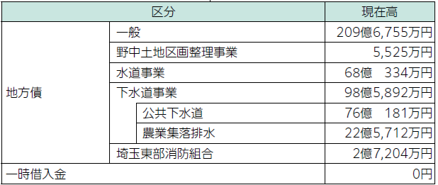 なお、埼玉東部消防組合は、借り入れごとの構成市町の負担割合に基づく加須市負担分です。