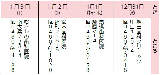 ■年末年始の休日歯科診療(急患対応)