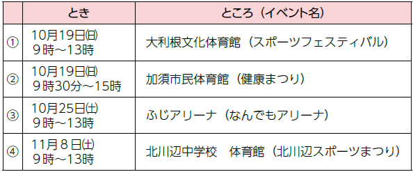 各地域のイベント内で実施します。