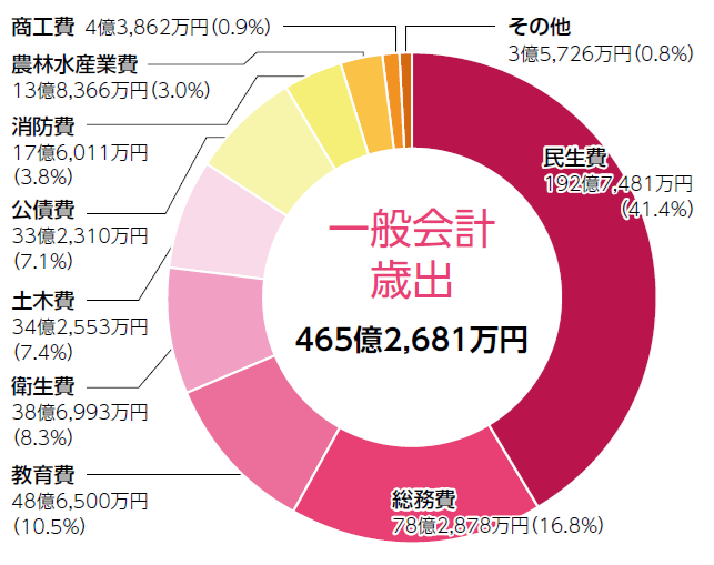 新型コロナウイルス感染症対応に要する経費などが減少しましたが、物価高騰対策による定額減税調整給付金の給付や小学校の施設整備などにより、民生費や教育費は増加しました。