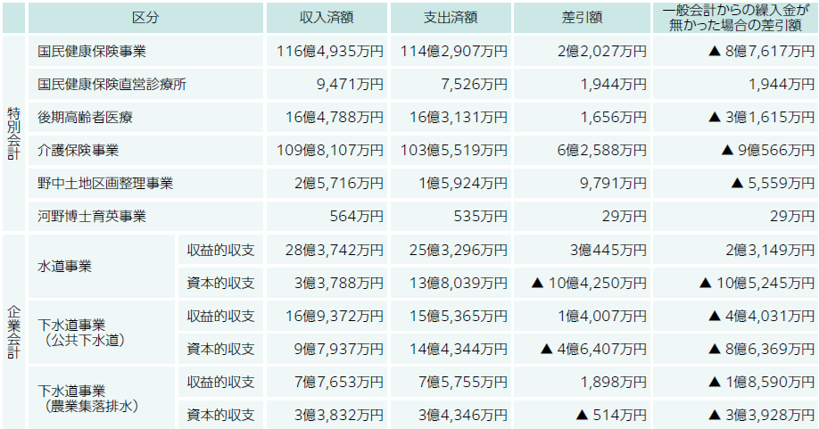 ※安定した運営のために、特別会計や企業会計の収入済額には、一般会計からの繰入金などが含まれています。