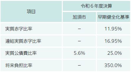 全ての指標が国の基準を下回っているため、健全な財政状況と判断されます。