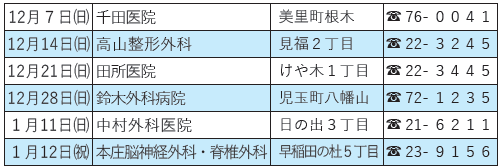 問合せ:本庄市児玉郡医師会立本庄市休日急患診療所