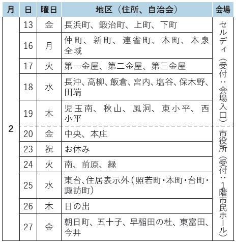 ※地区ごとの指定日で都合が合わない場合は、別の日や市内全域対象日にお越しください。