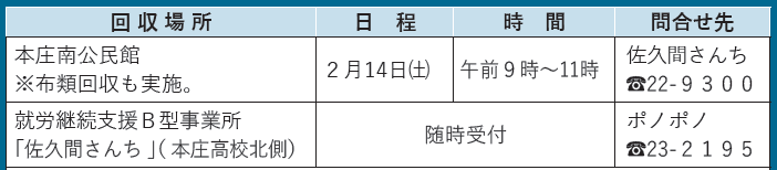市役所及びアスピアこだまで行っていた、集団資源回収は終了しました。今後は拠点回収をご利用ください。