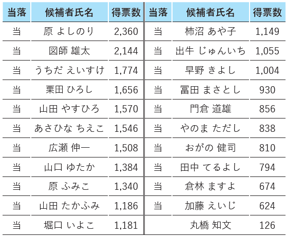 本庄市議会議員一般選挙開票結果