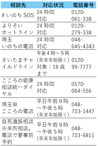 自殺の多くは、自分では対処できない悩みを抱え、正常な判断ができていない場合が多いといわれ、誰にでも起こる可能性があります。からだの病気と同じように、こころの不調に気づいたら、早めに相談しましょう。