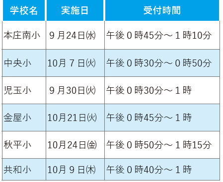 令和8年度小学校入学予定者を対象に、健康診断・知能検査・きこえとことばの検査を行います。対象者には、8月下旬に通知を送付しています。駐車場等について詳しくは、通知をご覧ください。通知が届かない場合や受診校の変更を希望する場合は、学校教育課へお問い合わせください。
