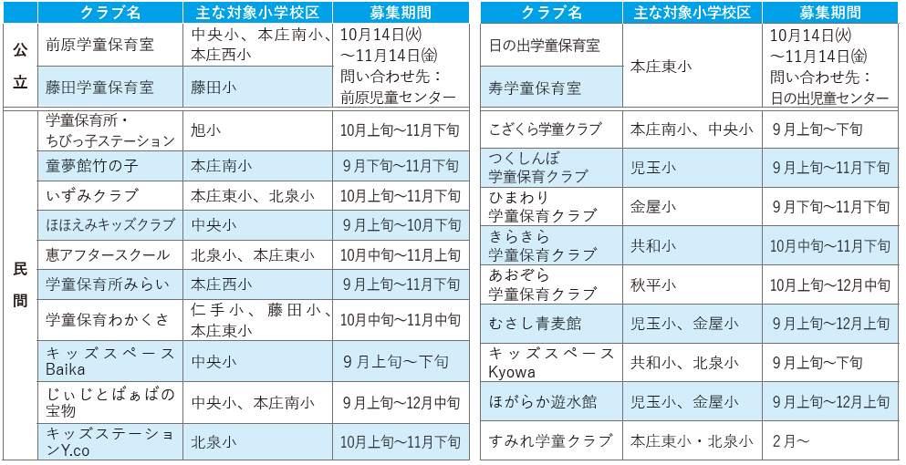 市では、こどもたちの安全を図り、保護者の皆さんが安心して働くことができるように、放課後に保育を必要とする児童を対象に、遊びと生活の場を提供する学童保育事業を行っています。入所の申込等、詳しくは各クラブへ直接お問い合わせください。