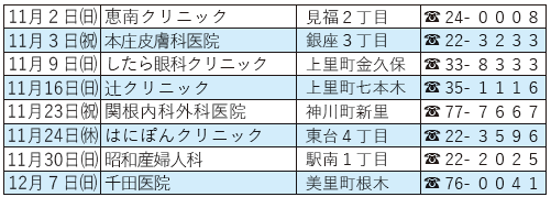 問合せ:本庄市児玉郡医師会立本庄市休日急患診療所