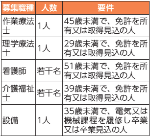 申込み・問合せ:採用試験申込書に必要事項を記入し、直接、メール又は郵送で〒355-0005 松山2392市民病院 病院総務課へ。