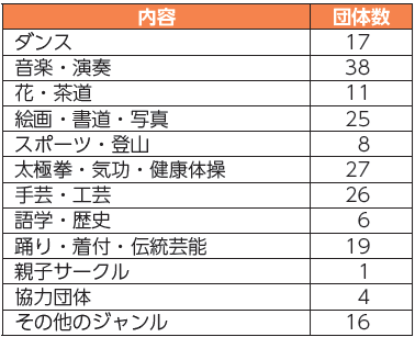 活動内容・団体数(令和7年11月1日現在)