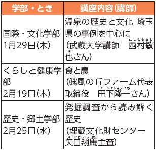 申込み:1月5日(月)から各講座の前々日までに直接、電話、FAX又はメールできらめき市民大学へ。