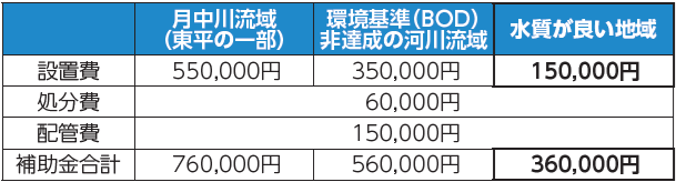 令和8年度から河川水質が良い地域に対する補助金額が大幅に下がります。ぜひ、令和7年度中の転換をご検討ください。