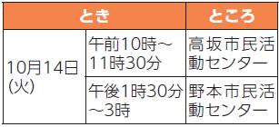 日時:10月11日(土)午前10時~11時30分