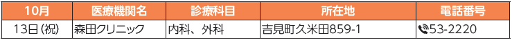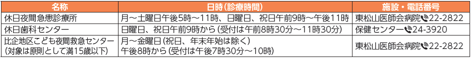 ※休日当番医のほかにも、比企地域には日曜日に診察をしている医療機関があります。日曜日に診察している医療機関は、市ホームページをご確認ください。