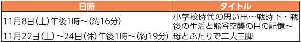 ■11月の映画会、戦争体験者証言ビデオ上映 共通事項