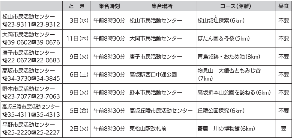 集合・受付:ウォーキングセンター 午前8時45分、正午解散予定、雨天決行