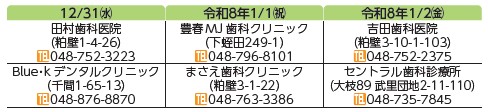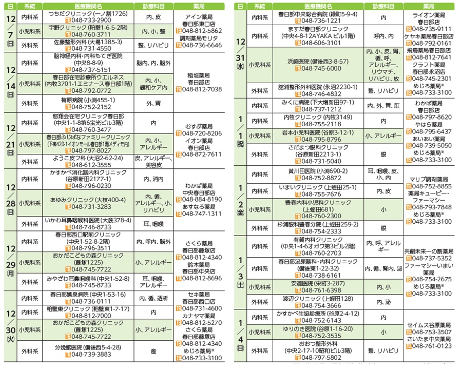市内医療機関・歯科医療機関の年末年始診療日程も12月下旬に市WEBで公開予定です。