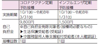 ※市外で接種する人は接種前に健康課(【電話】736-1199)へ問い合わせ(予診票を配布)の上、埼玉県住所地外相互乗り入れ期間(10/1(水)~令和8年1/31(土))に接種を。春日部市予防接種等助成金制度を利用する人は、接種前に別途、同課などに申請が必要。詳しくは市WEBで