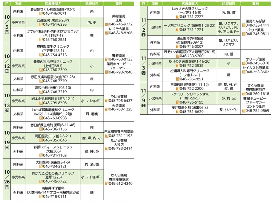 「休日当番医・休日当番薬局」の11月3日(祝)の情報