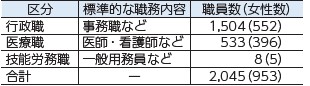 事務52人、技術11人、医療職57人、保育士2人、消防職16人、技能職0人、合計138人