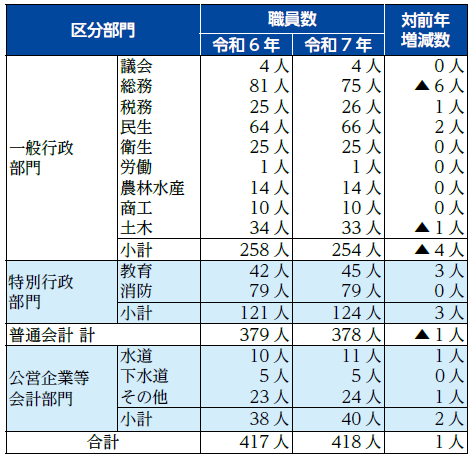 (2)部門別職員数(再任用フルタイム勤務職員を含む)