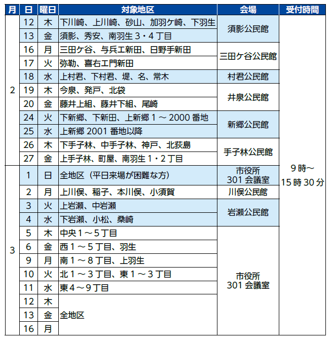 ※2月12日~27日、3月2日~4日は、市役所では申告相談を受けられません。