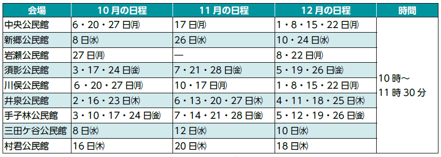 ※1年を通して開催しています。(日程表は各公民館で配布)