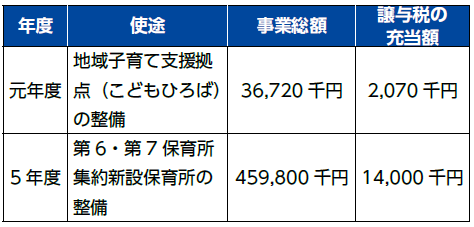※各年の森林環境譲与税のうち、充当していない額は、羽生市森林環境譲与税基金へ積立てています。令和6年度末時点での積立額は、12,200,513円(運用益含む)です。