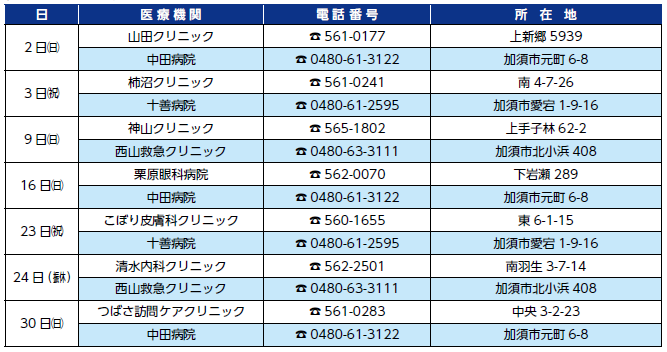 ■11月の在宅当番医(羽生・加須)