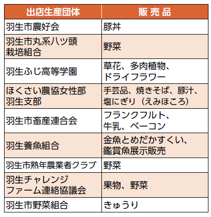 ※上記に加えて他の出店(31店予定)と直売所での販売があります。