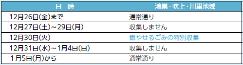 ※年始の戸別収集および自己搬入は、1月5日(月)から開始します
