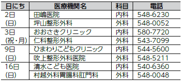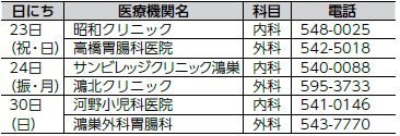 ・鴻巣市医師会救急ダイヤル【電話】543-9900(24時間対応)