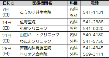 ・鴻巣市医師会救急ダイヤル【電話】543-9900(24時間対応)