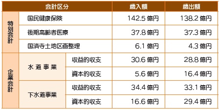 一般会計:市の基本的な経費(市税などを財源とした福祉・教育・土木などへの経費)を扱う会計