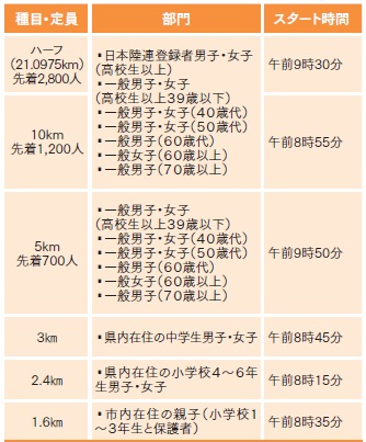 ※ハーフ・10kmは(公財)日本陸上競技連盟公認コース