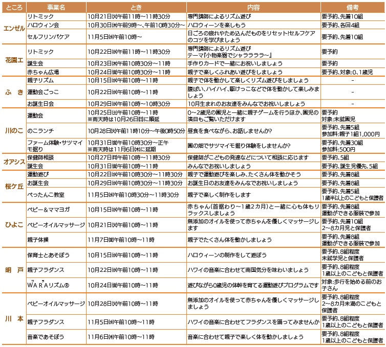 ※事業により年齢制限がありますので、備考欄をご確認ください。記載がない場合は、未就学児と保護者が対象です。