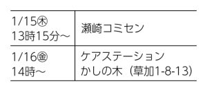 申込み:1/5(月)~16(金)に草加市社会福祉協議会HPから申込書を入手し、同協議会へ。
