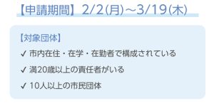 ◆地域で活動するスポーツ団体の皆さんは、期間内に申請を