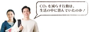 ちりも積もれば山となる。みんなが自分事として小さな心がけを続けていくことで、CO2を減らしていくことができる!こうした行動を日常に取り入れれば、地球にやさしいのはもちろん、今までより健康的になったり、家計が助かったり、ほかにもいいことがたくさんありそうだ。