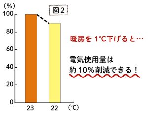 エアコンの設定温度を1℃緩和すると、暖房で約10%冷房で約13%の電力削減に!