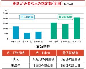カードをお持ちの方のうち、約8割の方は令和9年度までに有効期限を迎えるため、更新の手続きが必要です。