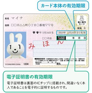 マイナンバーカード・電子証明書の有効期限満了日の2~3か月前に、有効期限通知書(青い封筒)が届きます。