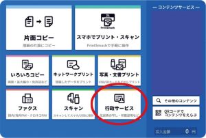 (1)コンビニに設置してあるマルチコピーの「行政サービス」を選択